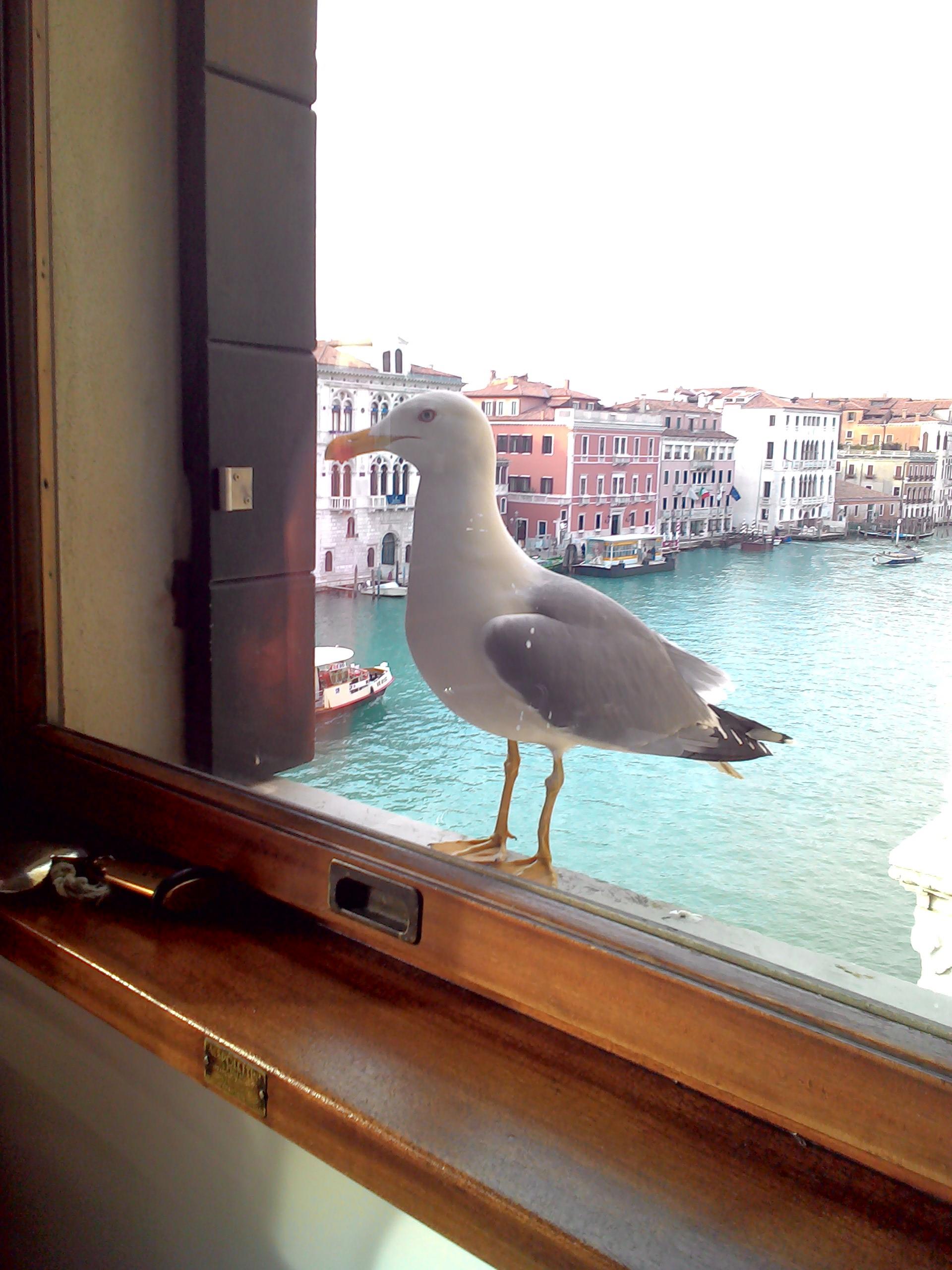 Vino 2 o 3 veces mientras desayunabamos a la vista del Gran Canal, hacia frio pero a ella no parecia importale, estaba muy interesada en lo que habiamos escogido en el "buffet" , la invitamos a entrar pero solo queria ver si el hotelito estaba lleno, , , dijo que se entretenia mucho viendo a los turistas ..